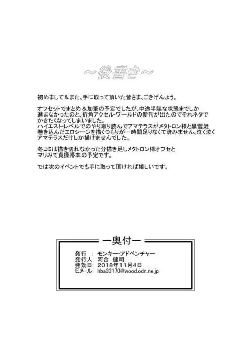 [Monkey Adventure (Kawai Kenji)] Amaterasu-sama wa Kumotsu o Shomousu (Accel World) [Digital]